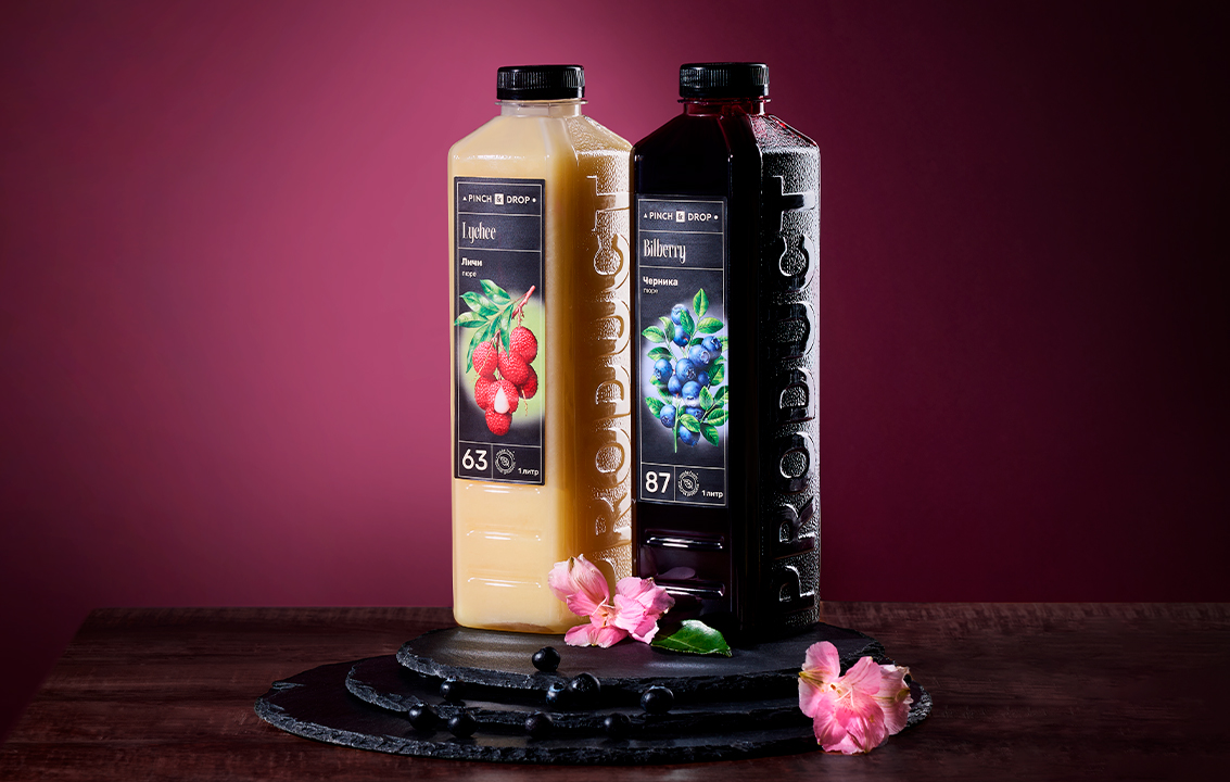 Pinch&Drop® purées – a concentrated, rich, and heat-stable product. This allows storing bottles after opening without refrigeration for up to 1 month.